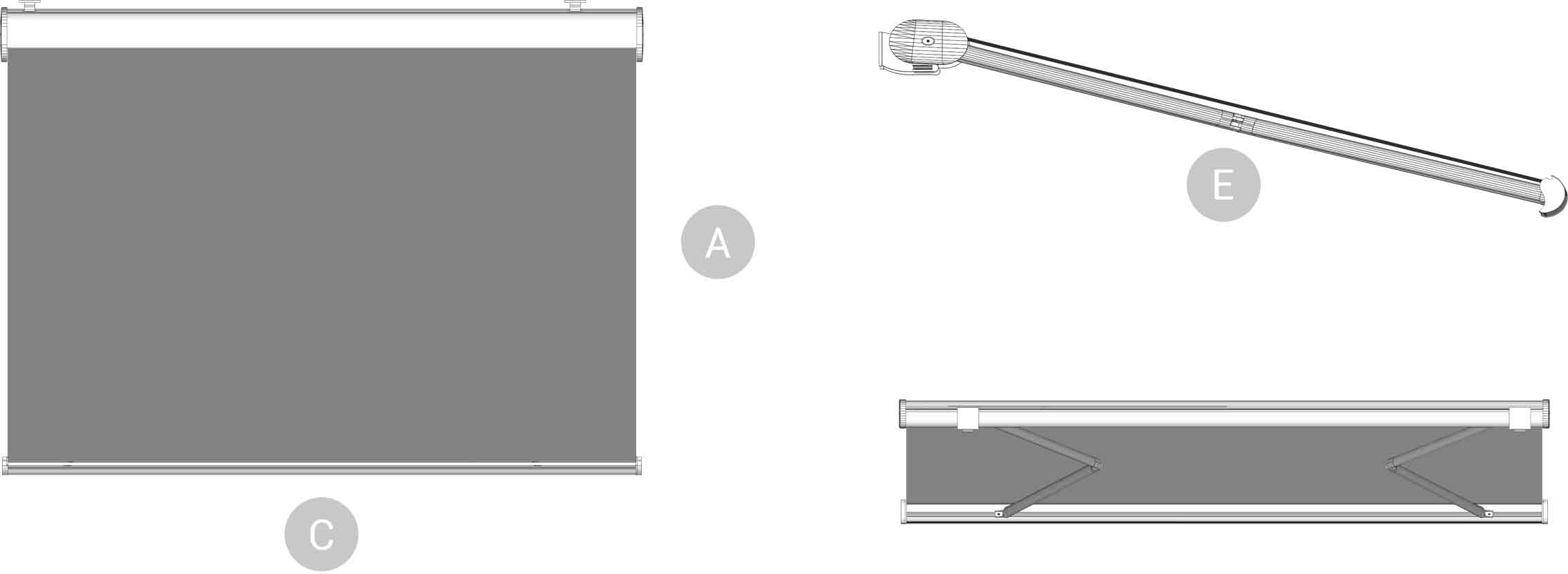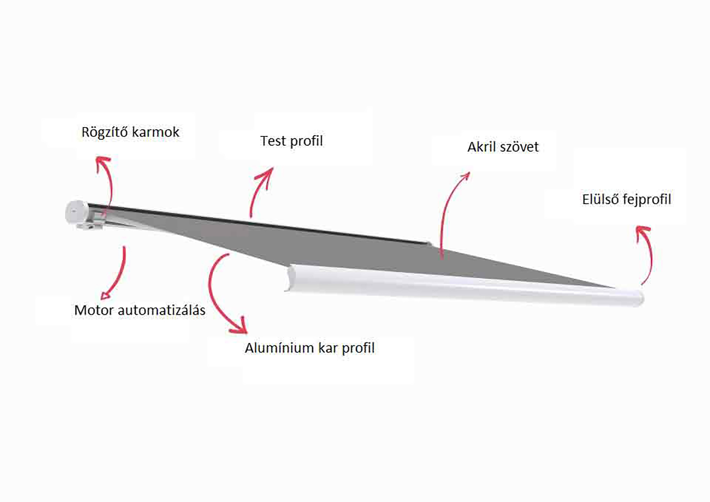 A napellenző külső váza és egyben befogató doboza porfestett alumíniumból készül.