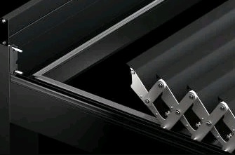 A lamellák mozgatásáról egy elektromosan vezérelhető aktuátor gondoskodik. A motor IP66 besorolású, porszórt rozsdamentes acél és alumíniumelemekből készül.