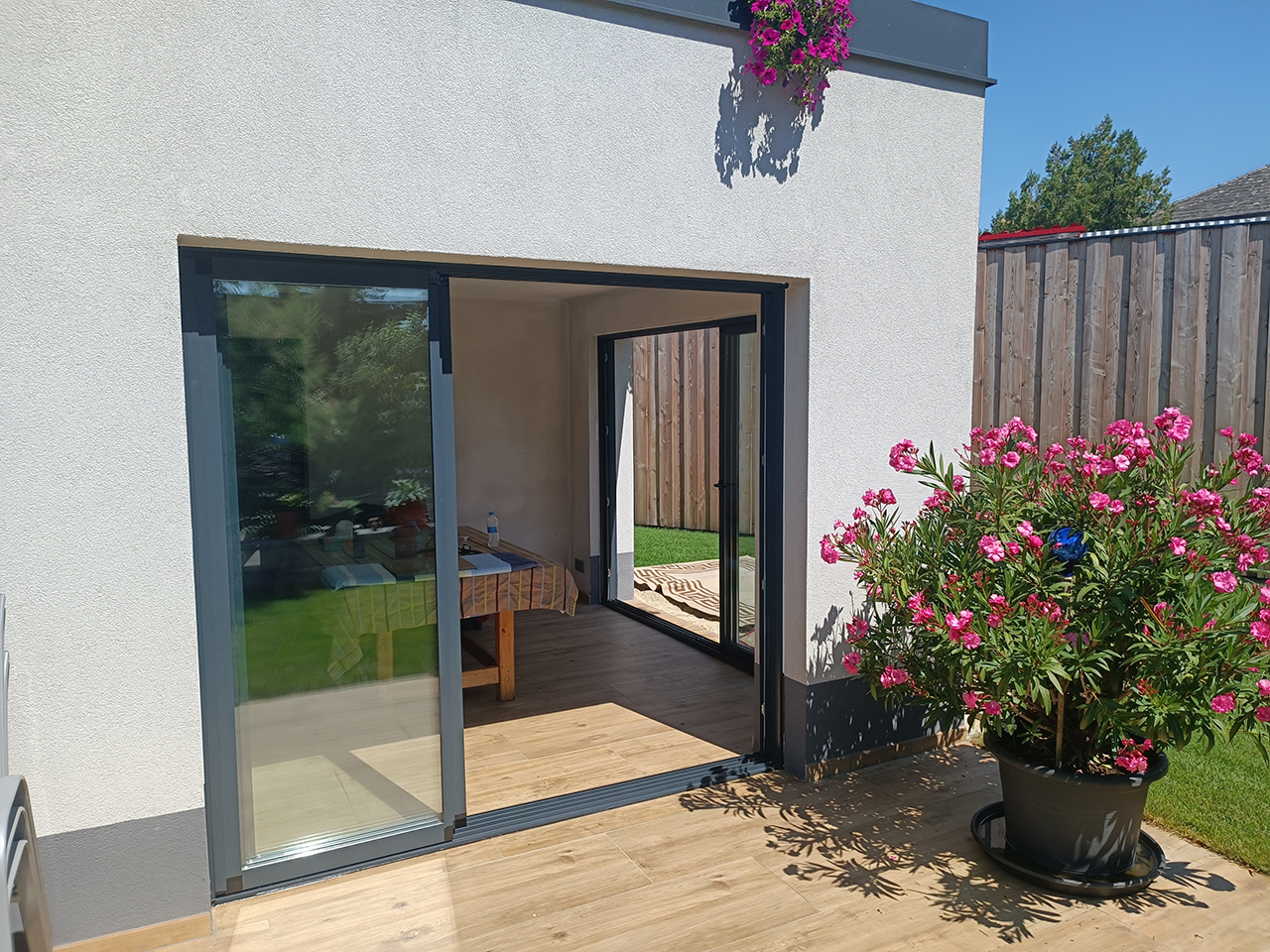 Legyen szó teraszról, kertkapcsolatos nappaliról vagy fedett pergoláról, a tolóajtók a nyitottság érzetét és a funkcionalitást egyszerre kínálják.